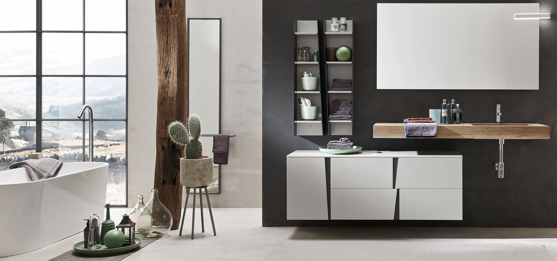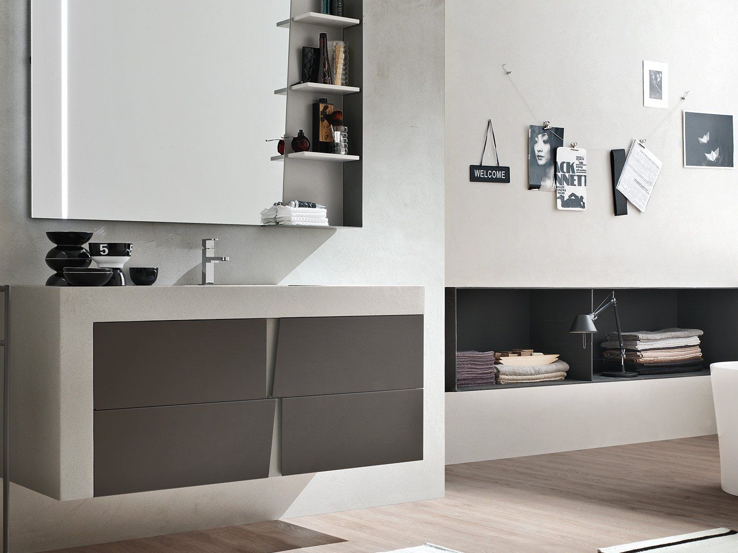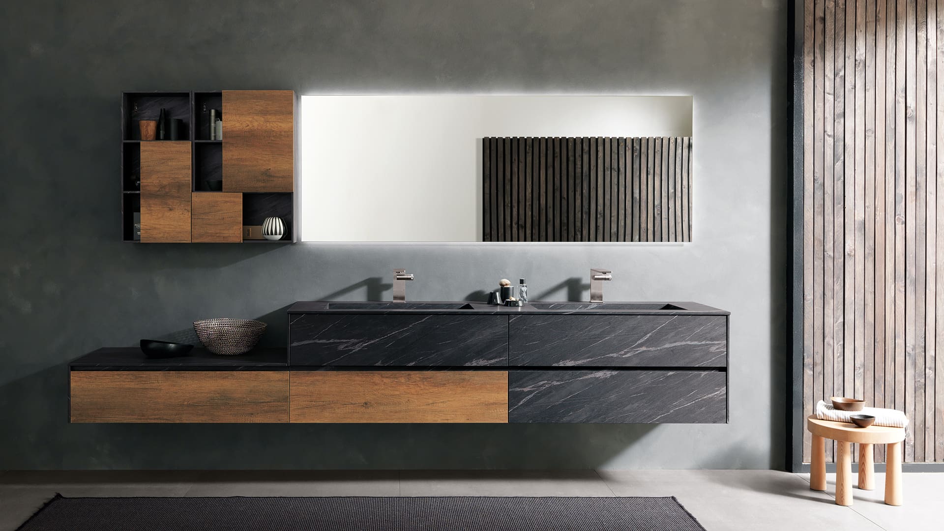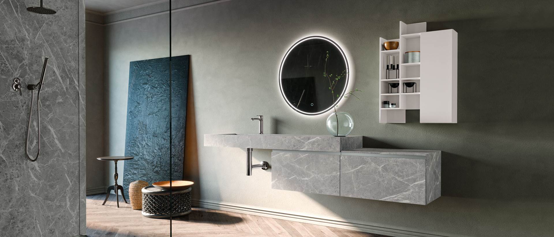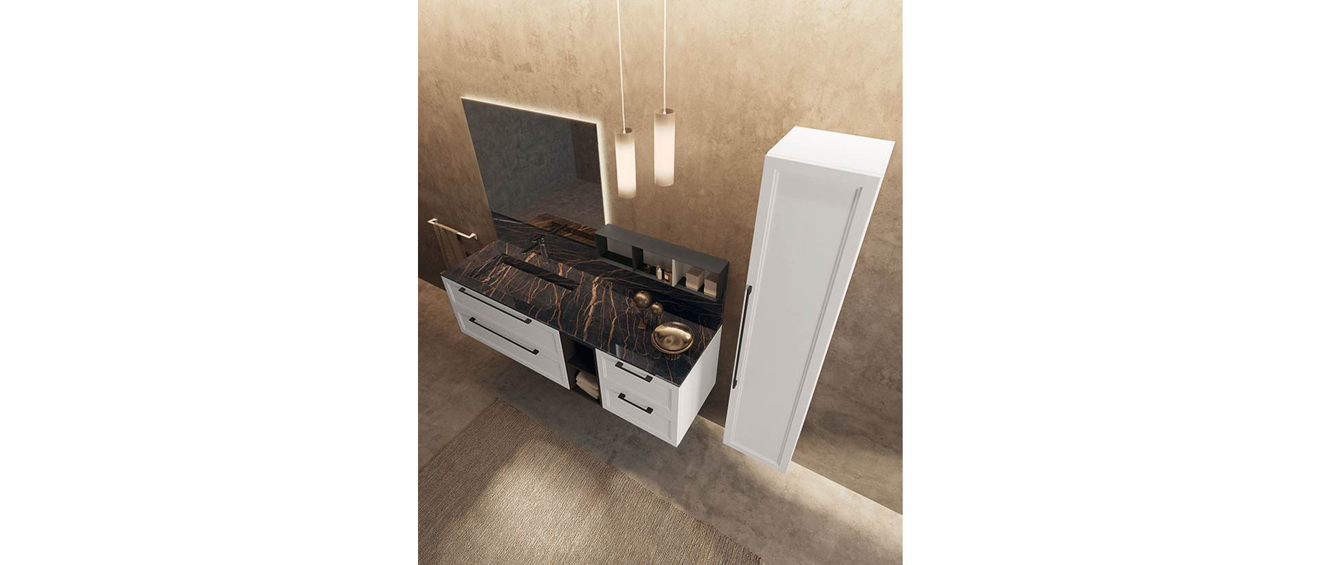E per completare il tuo piano lavabo potrai scegliere complementi d'arredo e mobili da bagno componibili e personalizzabili, sospesi o a terra realizzati con materiali di pregio quali legno naturale, spazzolato o verniciato a poro aperto, oppure in una vasta gamma di colori laccati, lucidi o opachi.