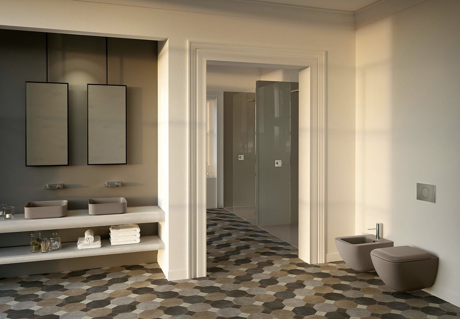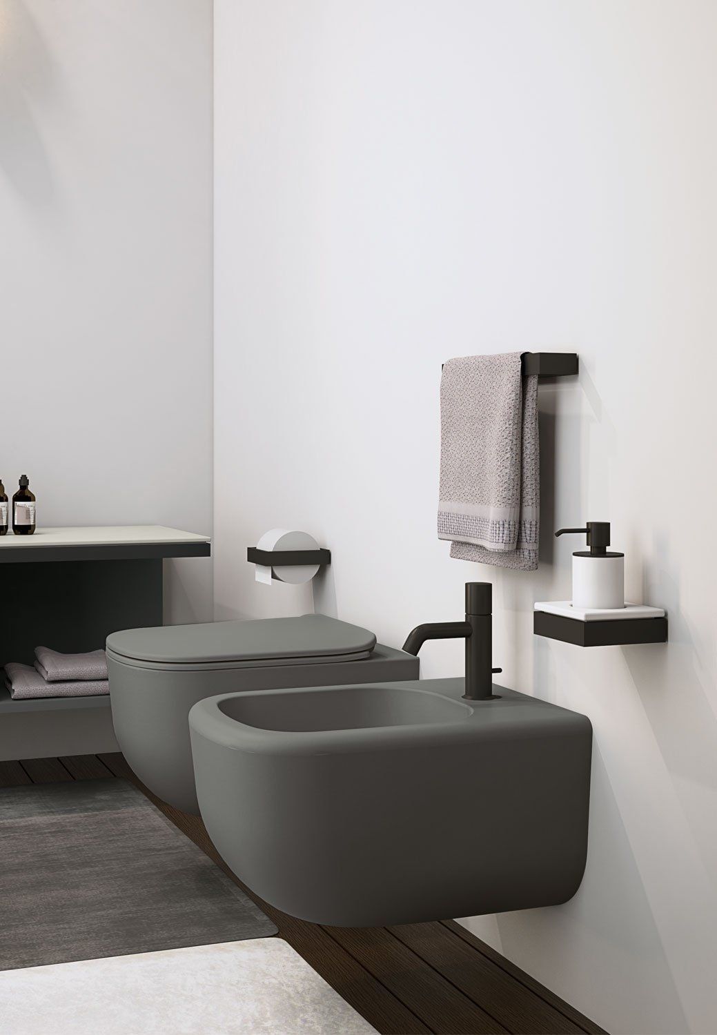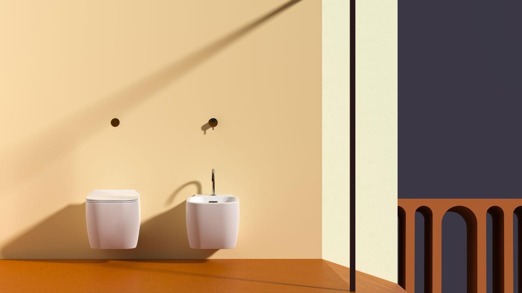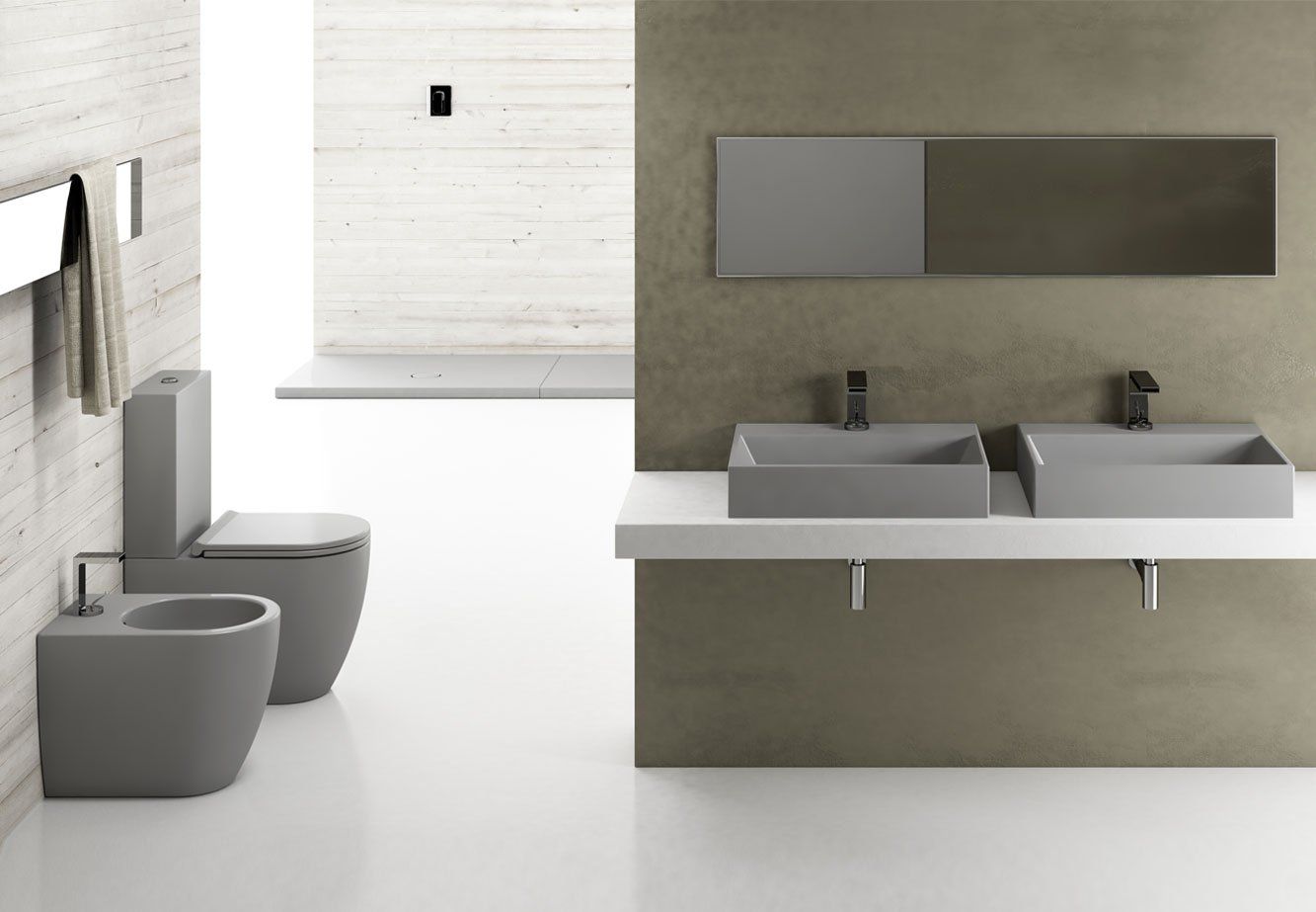 Sanitari a terra filo parete (back to wall) o sospesi, di tutte le dimensioni per poter arredare anche gli spazi più piccoli, inoltre è possibile dare un tocco di eleganza con la finitura bianco opaco - Matt oppure con gli altri colori opachi della gamma.