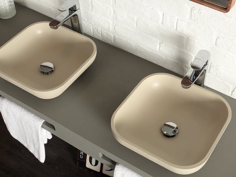 Invece se preferisci il lavabo in appoggio puoi avere il Top nelle stesse finture che potrai completare abbinandolo a tante tipologie di lavabi: Ceramica anche nei colori opachi abbinati ai sanitari, in Pietra, in Resina, in Vetro e altri ancora.