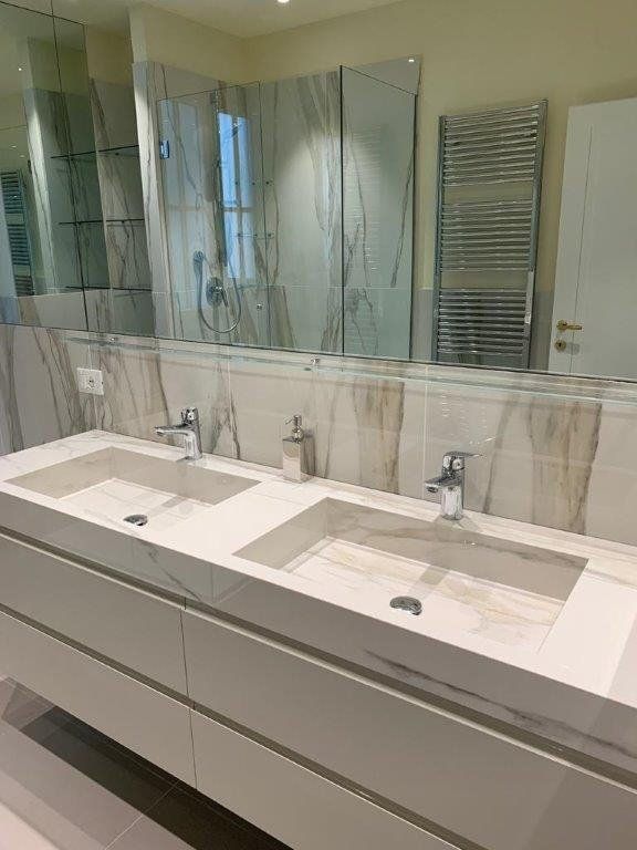 Dalla lavorazione delle lastre in grande formato è possibile realizzare lavabi, mensole e tavoli. Con la lavorazione dello spessorato 2cm è possibile ottenere bordi, gradoni e griglie per piscina. Tutte queste lavorazioni permettono di ottenere la massima omogeneità e pulizia estetica per i tuoi ambienti.