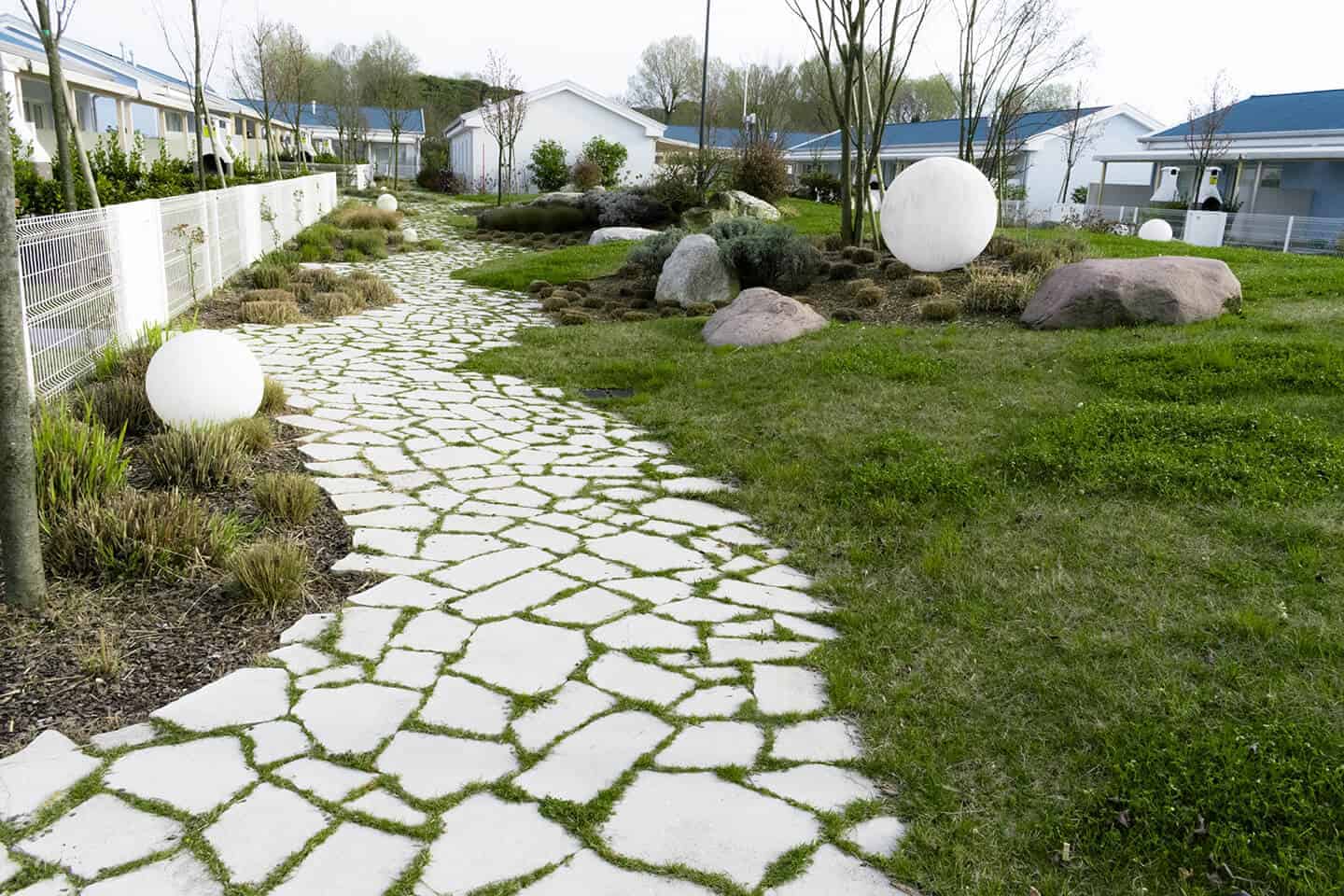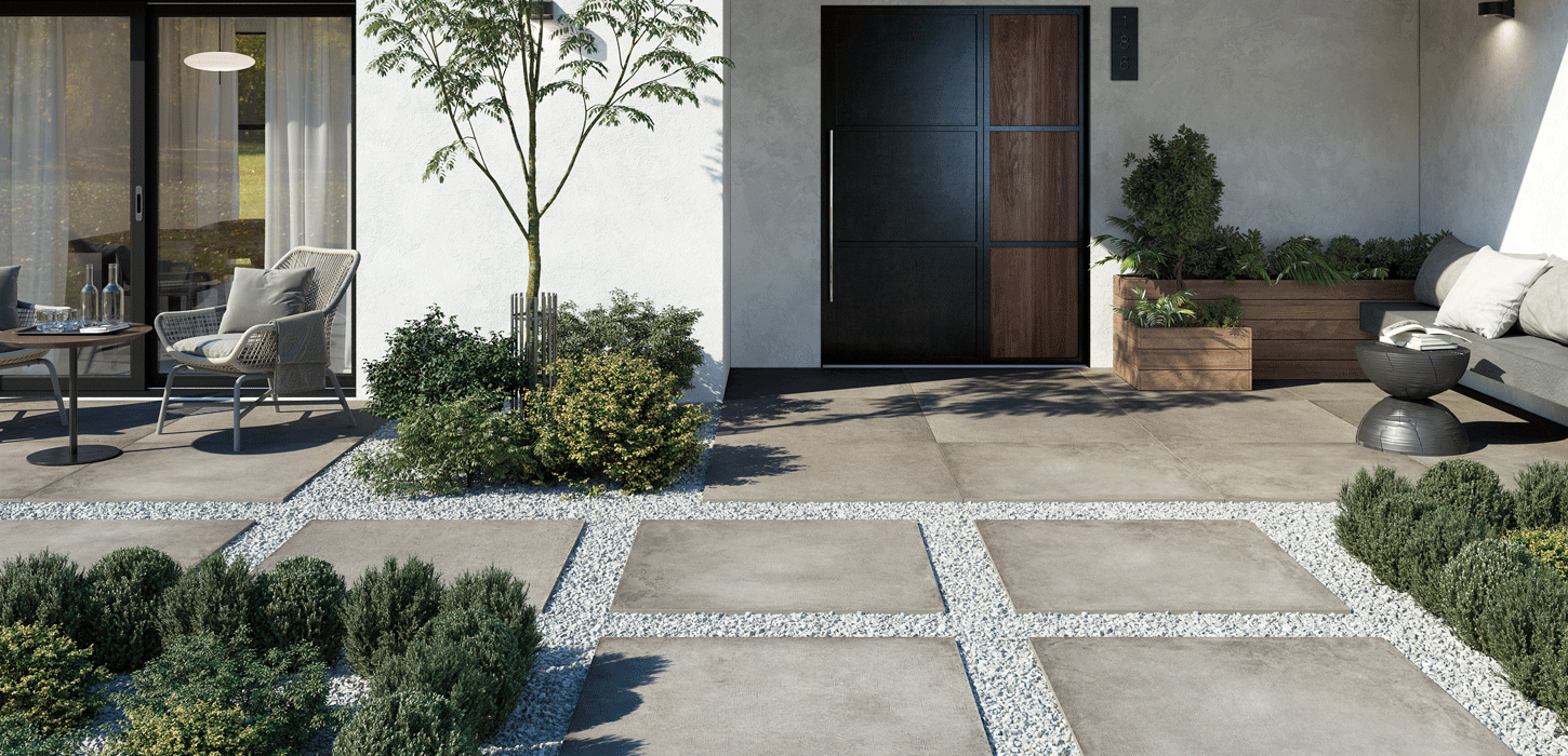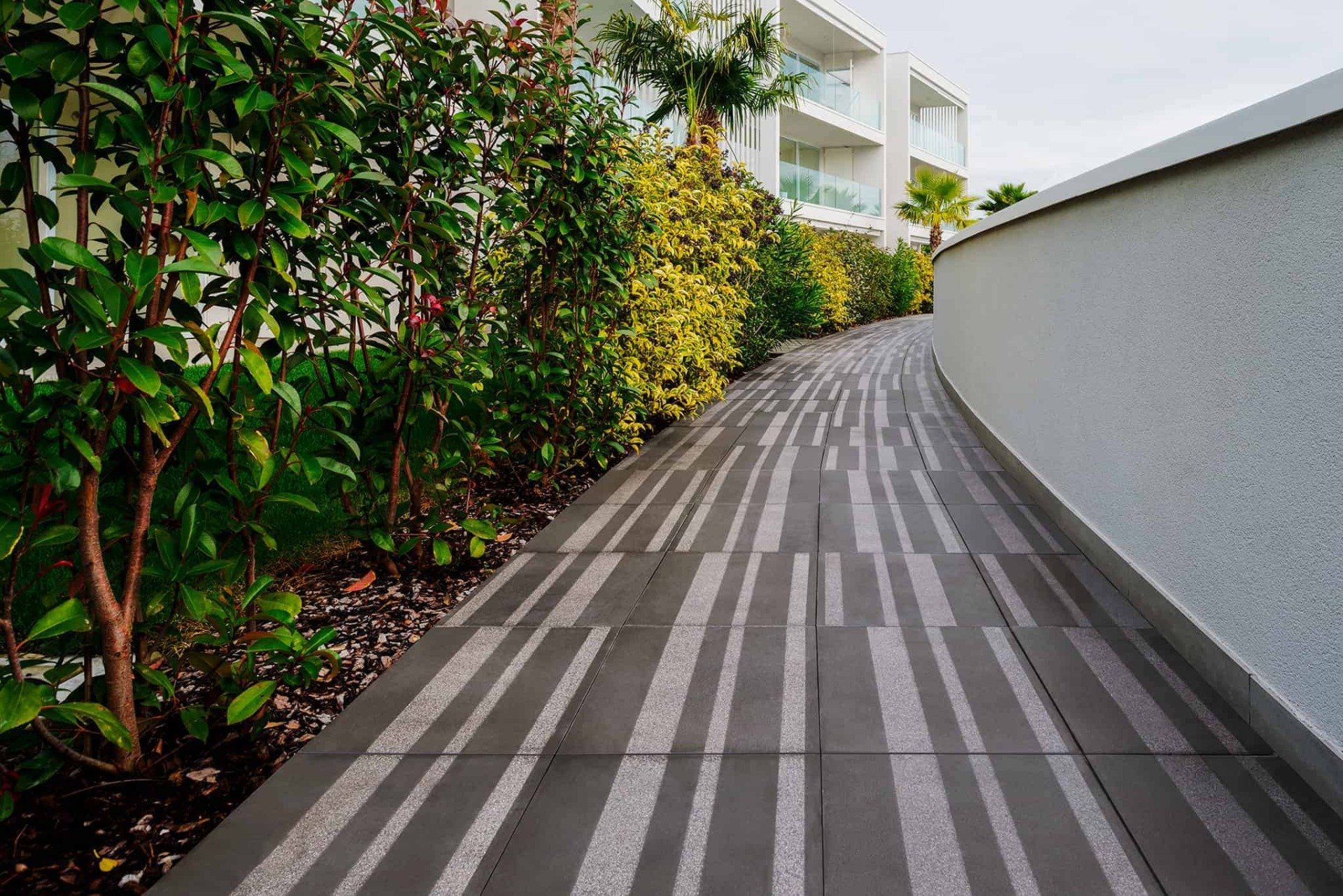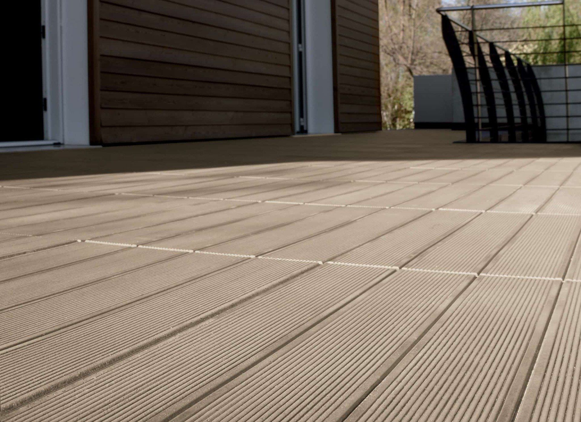 Inoltre con il nuovo spessore 2cm che dona alla piastrella un'alta resistenza meccanica, è possibile creare pavimenti sopraelevati su piedini che arrivano fino a un'altezza massima di 70cm, oltre a permettere di poterli appoggiare senza fissaggio direttamente su erba, sabbia o ghiaia per creare dei percorsi pedonali o spazi esterni.