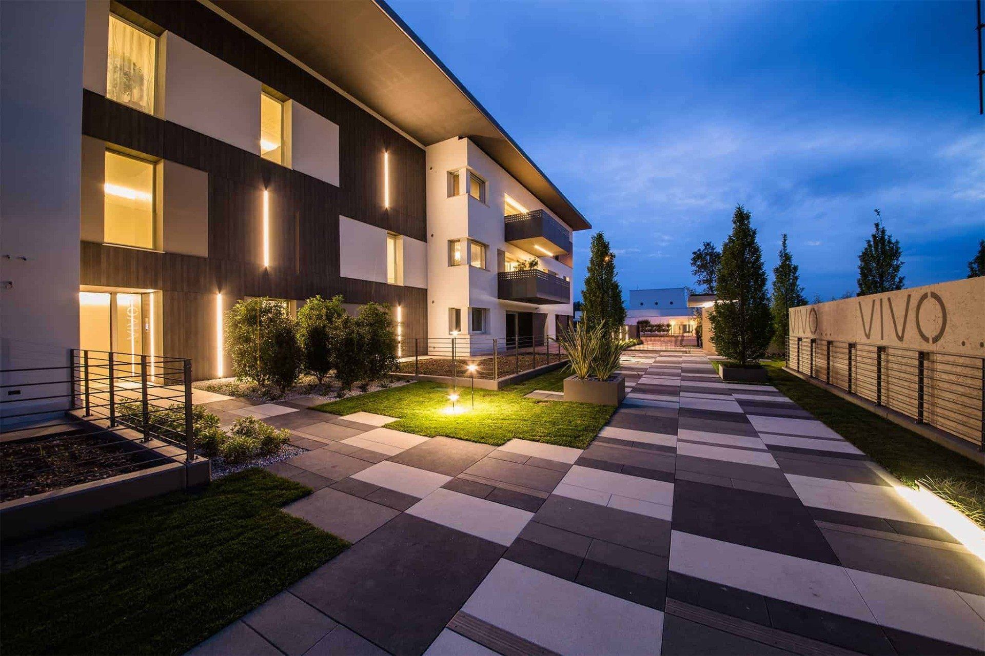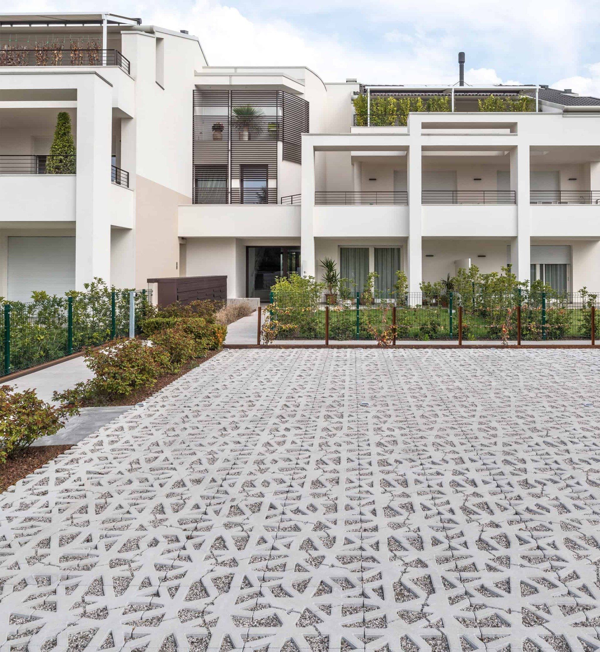 Per le aree esterne, ad esempio il parcheggio della vostra abitazione, i percorsi all'interno del vostro giardino, è possibile scegliere diverse soluzioni e spessori, con piastrelle realizzate in cemento o betonelle autobloccanti, con la possibilità della certificazione specifica di manufatto drenante.