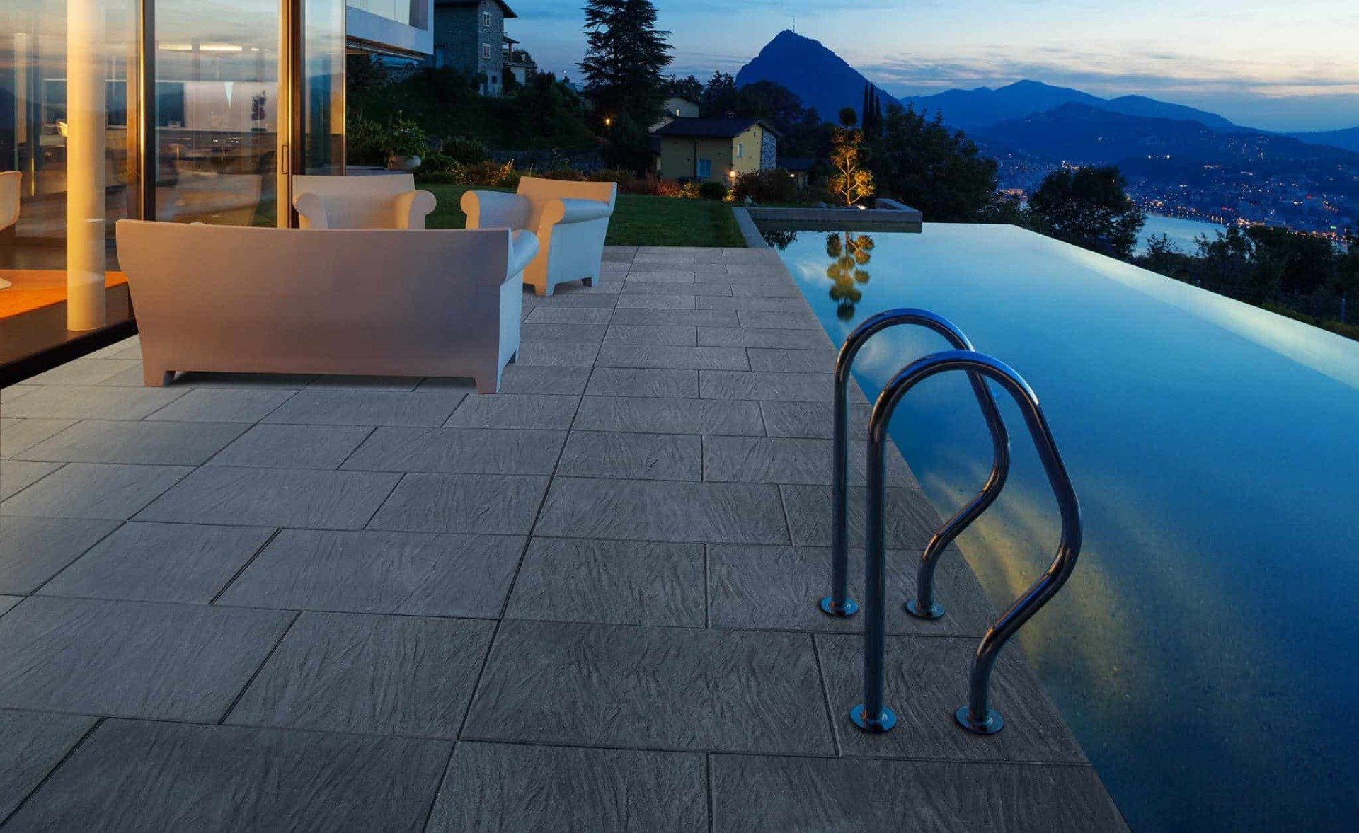 Tutti i nostri pavimenti per esterni sono certificati, resistenti al gelo e inalterabili nel tempo. Grazie alla sua superficie strutturata rispettano le normative antiscivolo sia per quanto riguarda l'utilizzo in esterni e sui solarium delle piscine.